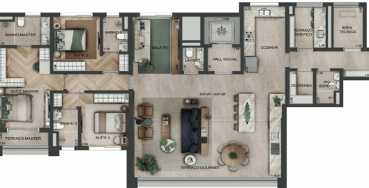 4 Dorms | 2 a 3 Suítes